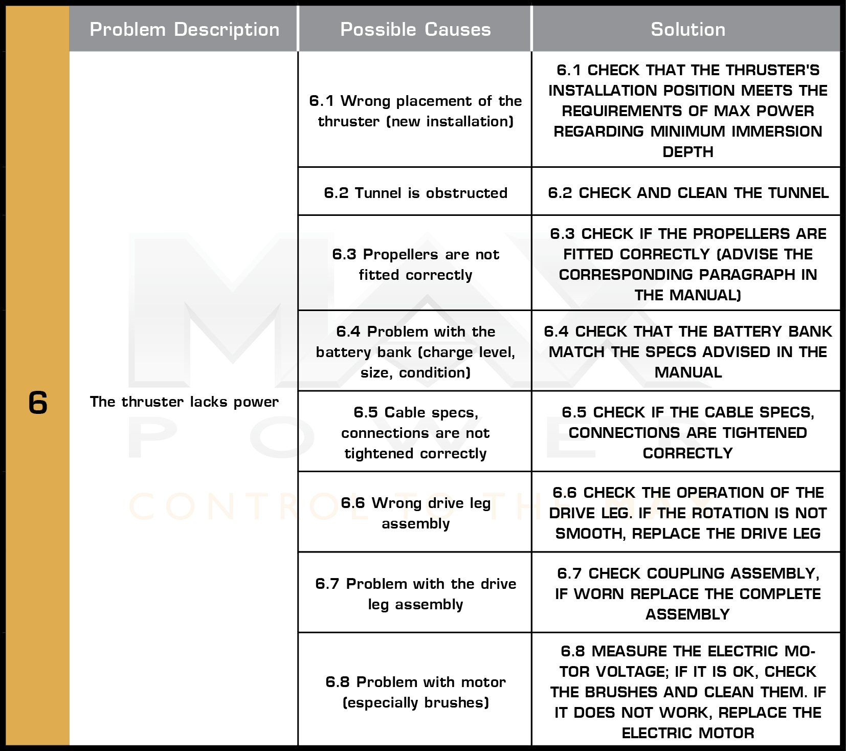 6. Why my thruster lacks power?