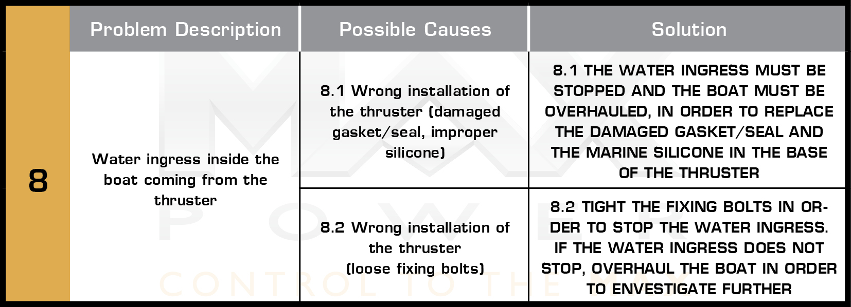 8. Why there are water ingresses, coming from the thruster, inside my boat?